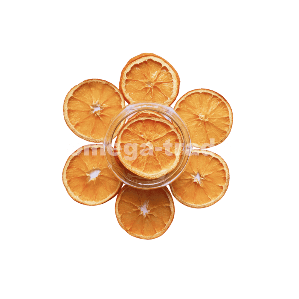 Продукт, изготовленный из свежих плодов апельсина, нарезанных на кольца и высушенных, что позволяет сохранить их сладкий и освежающий вкус, а также насыщенный цитрусовый аромат. Они идеальны для использования в кулинарии, добавляются в чаи, коктейли, выпечку и салаты, придавая блюдам яркость и оригинальность.