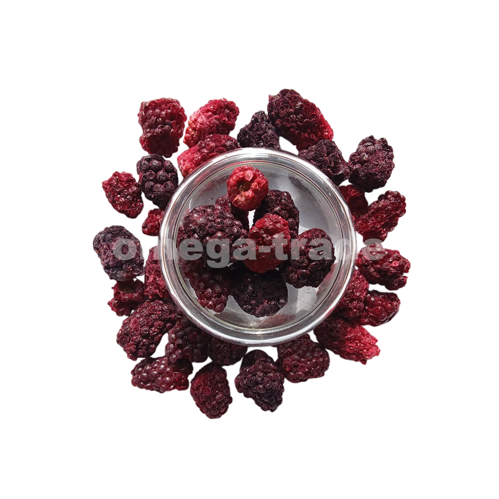 Целые ягоды ежевики, высушенные методом мягкой сублимации (заморозкой). Полностью сохраняют естественную кисло-сладкий вкус, насыщенный ягодный аромат, природный тёмно-фиолетовый цвет и форму. Хрустящие, лёгкие, воздушные, без сахара и добавок. Идеальный полезный перекус, а также отличное украшение и топпинг для каш, йогуртов, мороженого, десертов, выпечки и смузи. При намокании восстанавливают сочность.