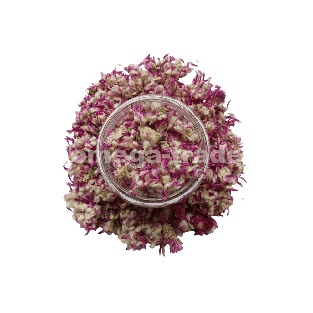 Высушенные и измельчённые цветочные соцветия гомфрены, известной яркими долгостоящими цветками; её используют в чайных смесях, ингаляциях, декоре и сухих букетах, а в народной медицине — для лёгких отваров при кашле и как успокаивающее/мягкое противовоспалительное средство.