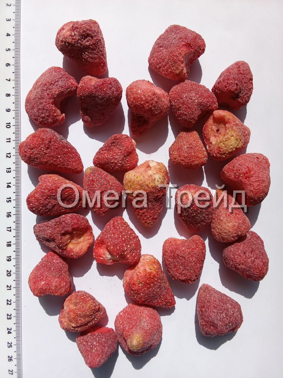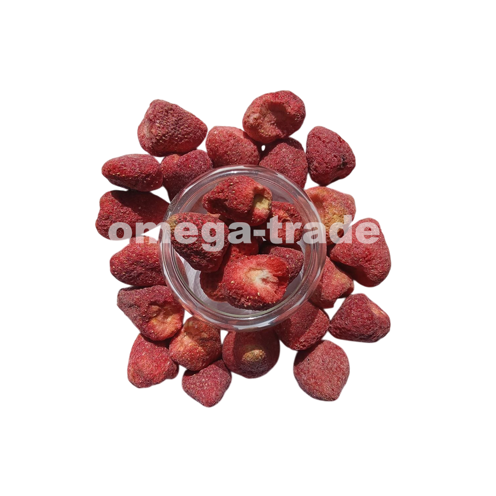 Цельные ягоды клубники среднего размера, высушенные методом мягкой сублимации. Полностью сохраняют естественную форму, яркий кисло-сладкий вкус, насыщенный ягодный аромат и красный цвет. Без сахара, консервантов и искусственных добавок. Хрустящие, лёгкие, воздушные — при намокании восстанавливают сочность. Идеальный полезный перекус, а также эффектное украшение для десертов, тортов, капкейков, пирожных, мороженого и коктейлей.