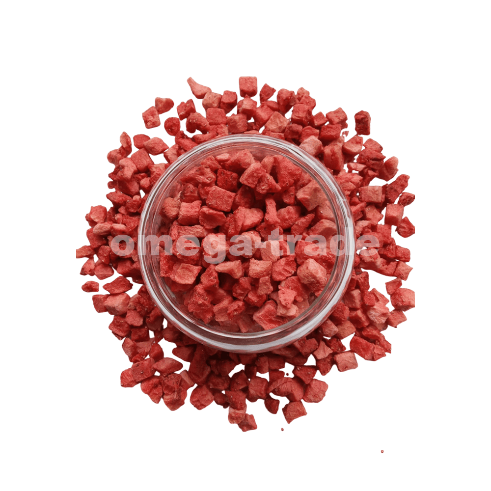 Сублимированная клубника, нарезанная на небольшие кубики и прошедшая процесс сушки при низком давлении и температурах, что позволяет сохранить её вкус, аромат и питательные вещества. Этот метод обеспечивает длительный срок хранения продукта, при этом сохраняются витамины и минералы, а также удобство использования в различных кулинарных приложениях, таких как добавление в десерты, каши и смузи. Сублимированные кубики являются отличным выбором для тех, кто хочет наслаждаться натуральным вкусом фруктов в любое время.