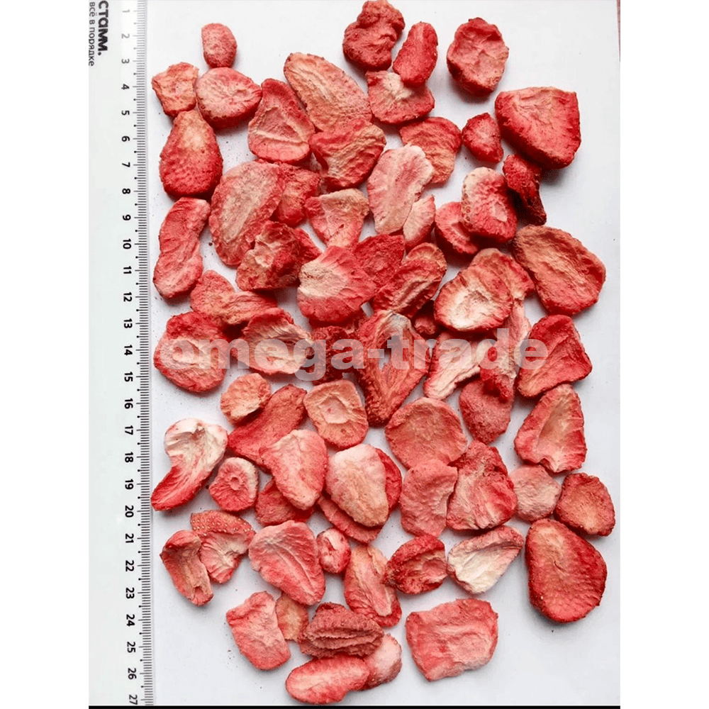 Сублимированная клубника, нарезанная на тонкие слайсы, которая проходит процесс сушки при низком давлении и температурах, сохраняя при этом свой цвет, вкус и питательные вещества. Этот метод позволяет создать продукт с длительным сроком хранения, который сохраняет большинство витаминов и минералов, а также удобно использовать в кулинарии для приготовления десертов, добавления в мюсли или выпечку.