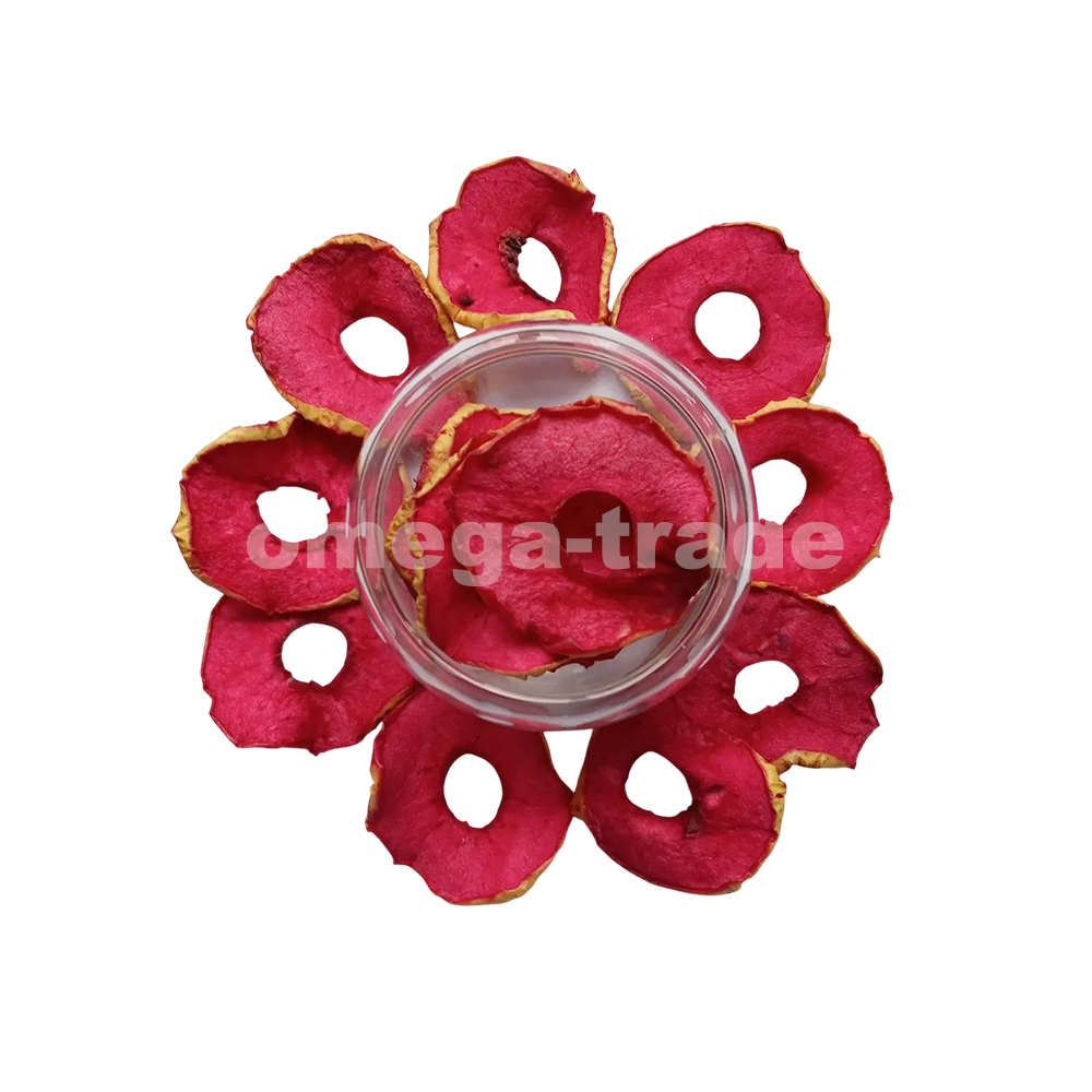 Хрустящие слайсы из отборных красных яблок с натуральной сладостью, ярким фруктовым ароматом и добавлением пряной корицы. Красная кожица придаёт более насыщенный, чуть терпкий вкус и красивый румяный вид. Полезный перекус или ароматная добавка к чаю, кашам, йогуртам и выпечке.