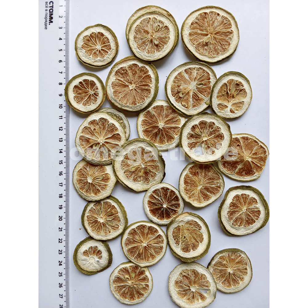 Ароматный и питательный продукт, получаемый из свежих плодов лайма, нарезанных на кольца и высушенных для сохранения их яркого кислого вкуса и свежего аромата. Они широко используются в кулинарии для добавления в напитки, коктейли, десерты и салаты, придавая блюдам изысканную цитрусовую ноту.