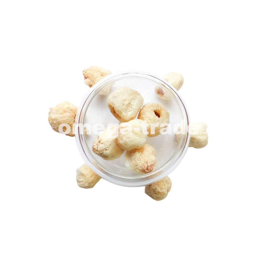 Целые плоды личи, высушенные методом сублимации (мягкая сушка заморозкой). Полностью сохраняют форму, естественный сладкий вкус, нежный цветочный аромат и сочную текстуру, которая восстанавливается при намокании. Хрустящие, воздушные, без сахара и консервантов. Уникальный полезный перекус, а также оригинальное украшение десертов, мороженого, выпечки и коктейлей.