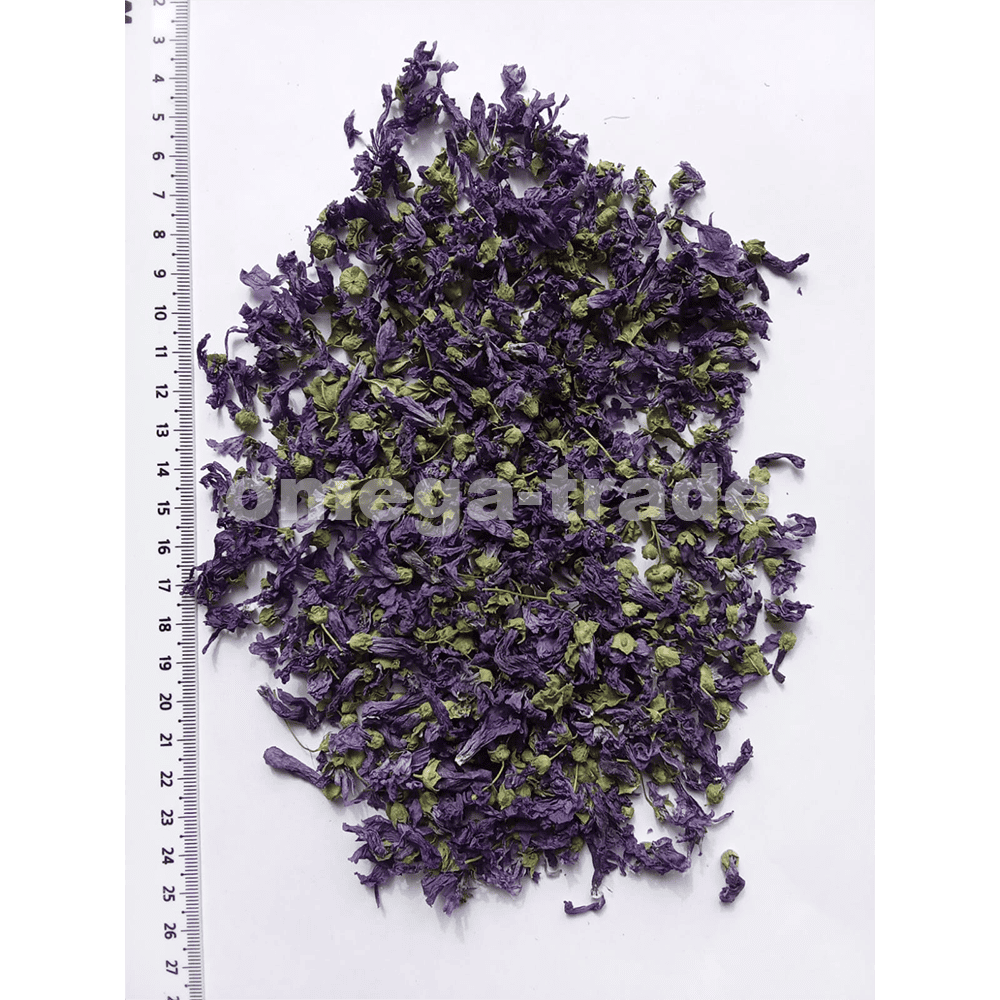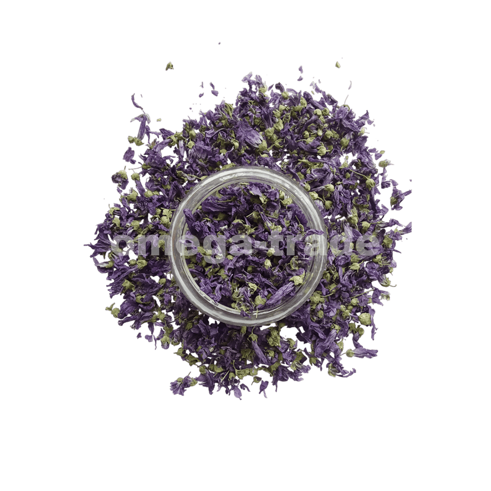 Лекарственное растение с синие‑фиолетовыми цветами; в сушеном виде используют цветы и листья как мягкое обволакивающее и противовоспалительное средство: настоями и отварами при кашле, боли в горле, воспалениях слизистых и желудочно‑кишечного тракта, а также для компрессов на кожу; содержит слизистые вещества (муцилагу), флавоноиды и антоцианы, имеет нежный вкус и приятный цвет настоя. Для приготовления чая обычно 1–2 ч.л. сухих цветов на чашку, настаивать 10–15 минут горячей (не кипящей) водой; хранить в сухом, тёмном и прохладном месте в герметичной посуде. Обычно безопасна, но при беременности, кормлении, детям и при приёме лекарств стоит проконсультироваться с врачом — слизь может снижать всасывание одновременных препаратов, возможны аллергии