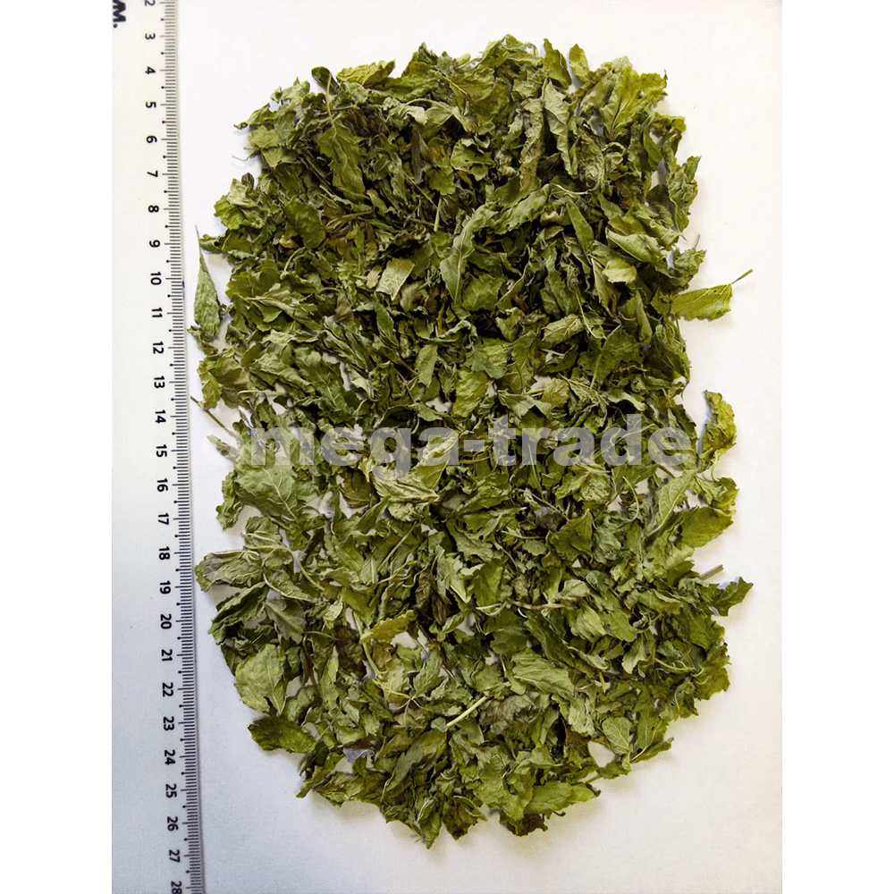 Высушенная зелёная масса с характерным лимонным ароматом, богатая эфирными маслами (цитраль, цимен, гераниол), розмариновой кислотой и флавоноидами; в народной и фитотерапии её используют как мягкое седативное и анксиолитическое средство (чай при тревоге, стрессе и бессоннице), как спазмолитик и средство для улучшения пищеварения (при вздутии, коликах), а также местно — при герпесе и для успокаивающего ухода в косметике и ароматерапии; в кулинарии добавляют в салаты, блюда и напитки.