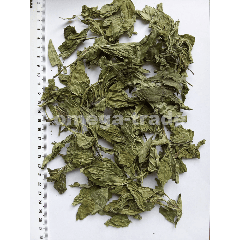 Ароматные высушенные листья мяты с освежающим ментоловым запахом и охлаждающим вкусом; в кулинарии её используют для чая, настоев, соусов, салатов, десертов и как гарнир, в медицине — для улучшения пищеварения, уменьшения спазмов, тошноты и головной боли (в виде чая, настойки или местного применения), в косметике и гигиене — в зубных пастах, ополаскивателях и косметических масках.