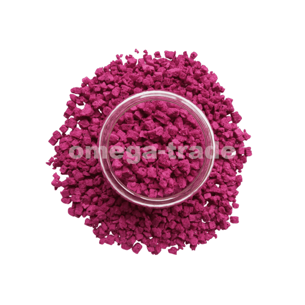 Сублимированная питахая, нарезанная на небольшие кубики, которая проходит процесс сушки при низком давлении и температурах, сохраняя свой яркий цвет, уникальный вкус и питательные вещества. Этот метод позволяет продлить срок хранения продукта и сохранить витамины и минералы, а также облегчить его использование в кулинарии, включая добавление в салаты, десерты и смузи.
