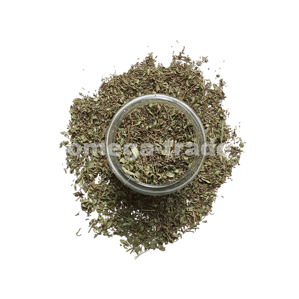 Ароматная трава с тёплым, слегка горчично-пряным вкусом и выраженным камфорным оттенком благодаря содержанию тимола; сушёные листья более концентрированы по аромату, поэтому используются в меньших количествах, чем свежие. В кулинарии он незаменим для мяса, птицы, рыбы, супов, рагу, соусов и маринадов, входит в букe га́рни и смеси прованских трав; подходит для консервирования и запекания, хорошо сочетается с чесноком, лимоном и розмарином. В народной и ароматерапевтической практике тимьян применяется как отхаркивающее и антисептическое средство (чай, ингаляции, полоскания), а также в косметике и для приготовления настоек и эфирного масла с антимикробными свойствами; хранить в сухом тёмном герметичном сосуде, беречь от влаги и света.