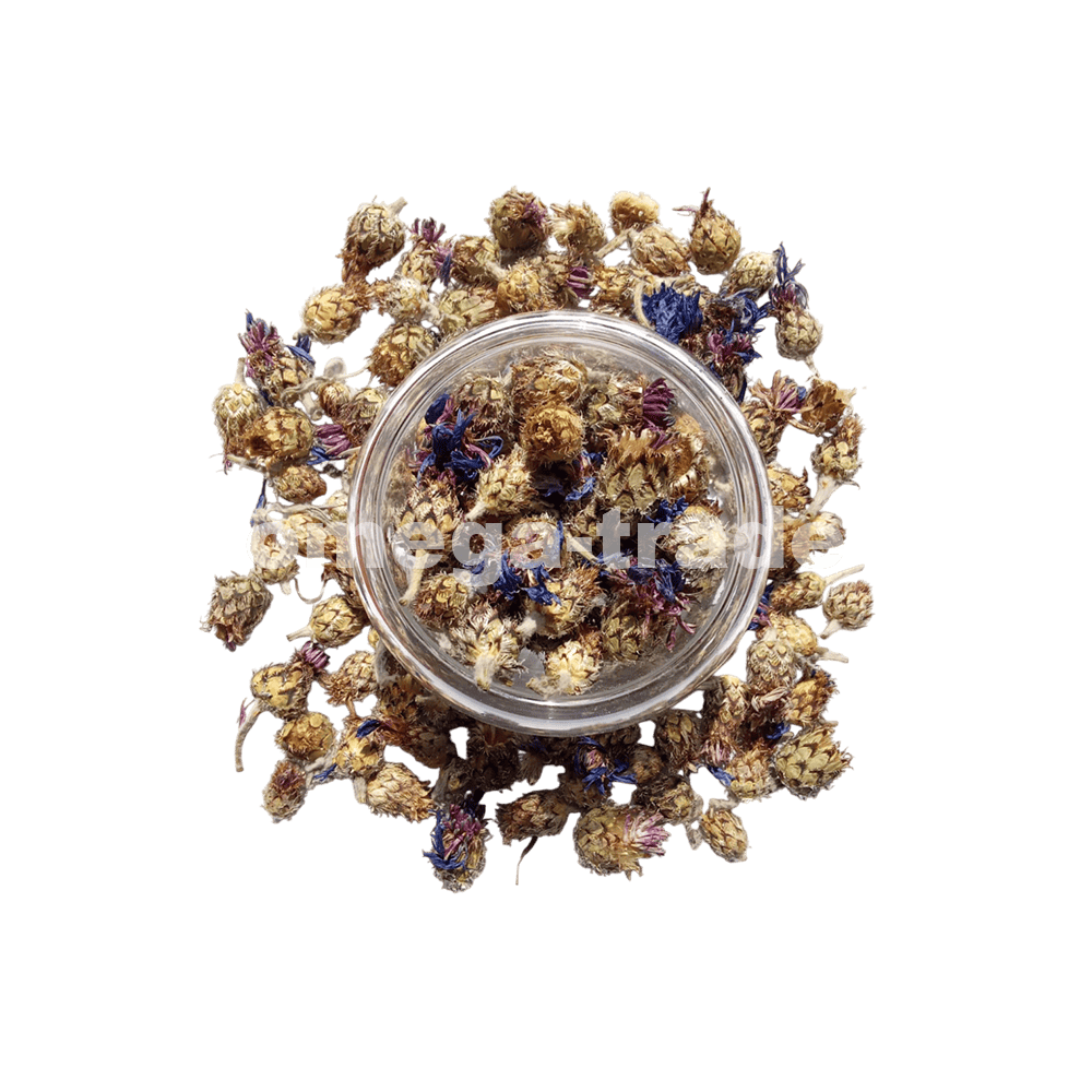 Яркие сухие бутоны насыщенно‑синего или фиолетового цвета, которые широко используют как декоративную и пищевую добавку; в высушенном виде они придают чаям и напиткам лёгкий цветочный и травяной оттенок, украшают выпечку, десерты и салаты, а также входят в травяные сборы и косметические средства
